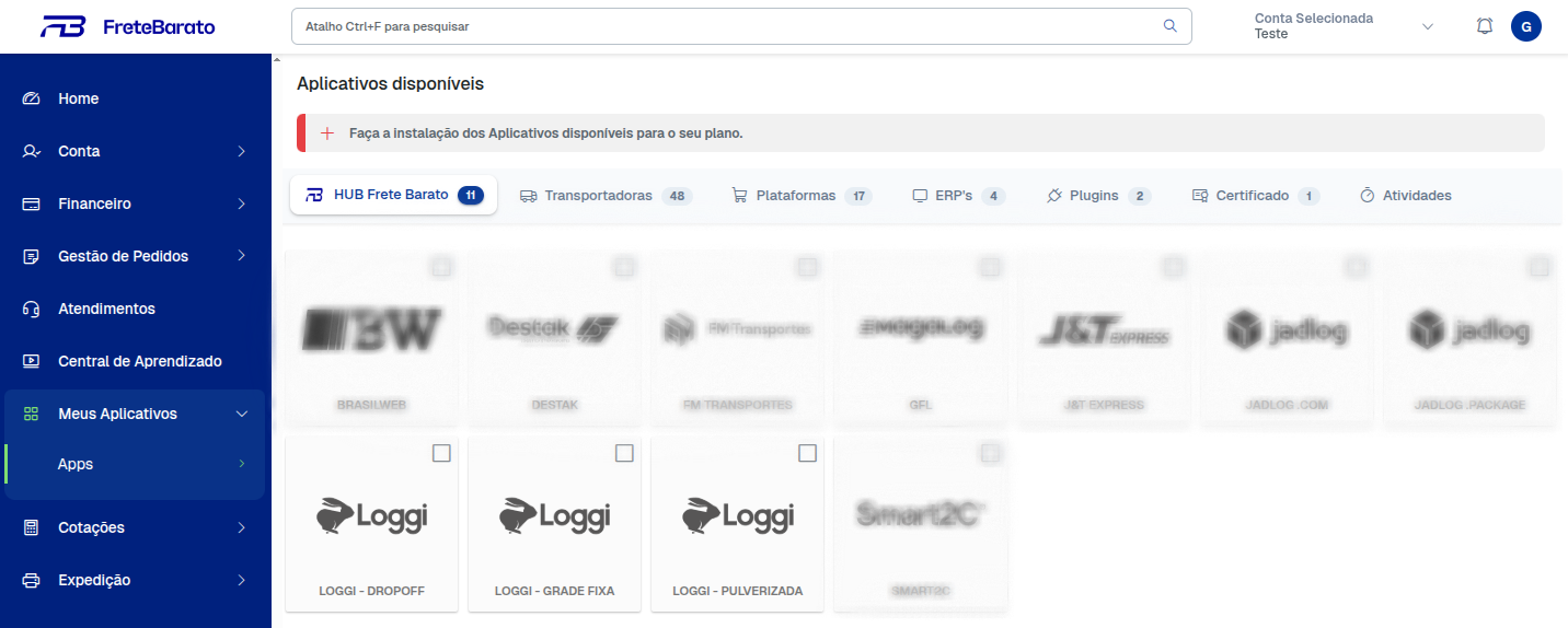 Após efetuada a criação da conta na Loggi e também da Frete Barato, basta seguir os seguintes passos: