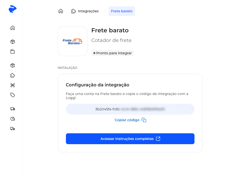 Pronto! Feitos todos os passos anteriores, você terá o código de integração para a Frete Barato.